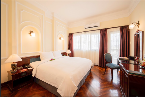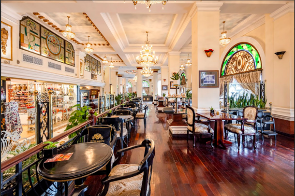 扉をくぐると、外の喧騒が嘘のように静かで、クラシック音楽が優しく流れるロビーがお出迎えしてくれます。大理石の床、木製のアンティーク家具、丁寧に磨かれた真鍮のランプ…。「ホーチミンにこんな優雅な空間があるんだ」と思わず深呼吸したくなるほどの品格。スタッフの笑顔もあたたかく、長旅で少し疲れていた気持ちが一気にほどけていきました。